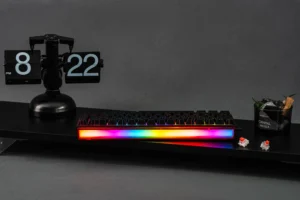 The impressive lightbox design at the front provides an exciting and immersive gaming atmosphere. Features vibrant backlighting with customizable effects to elevate your desktop aesthetic and enhance your typing experience. Additionally, the shine-through keycaps design allows for customizable lighting effects, enabling users to express their style while maintaining high performance.