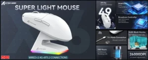 - In order to meet the needs of different scenarios, the X3 high-performance mouse is equipped with a BK3633 chip, providing three different connection modes, wired USB-C, 2.4GHz and Bluetooth mode, which can be easily switched through the button on the back of the mouse.