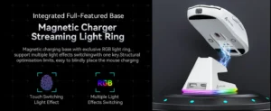 - Simply place your X6 mouse on the base and it’s always charged and ready for any adventure. Magnetic design, convenient and fast. There is also a touch switch on the charging base, which can switch the lighting effect by touching it.